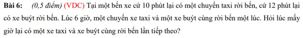 Vậy sau 60 phút, tức là 7 giờ một chiếc taxi và một chiếc xe buýt sẽ cùng rời bến.