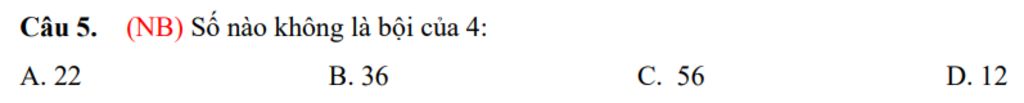 `=>` Số không phải bội của `4` là: `22`