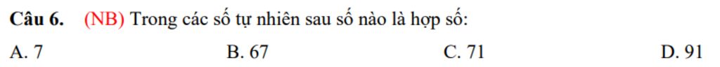 `=>` Trong các số tự nhiên trên, hợp số là: `91`