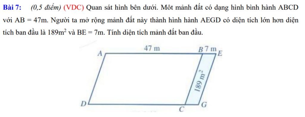 Chiều cao của mảnh đất hình bình hành `BEGC` là: