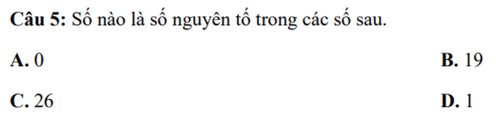 Câu 5: Số nào là số nguyên tố trong các số sau.