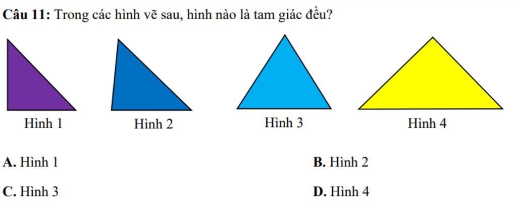`=>` Hình tam giác đều là: Hình `3`
