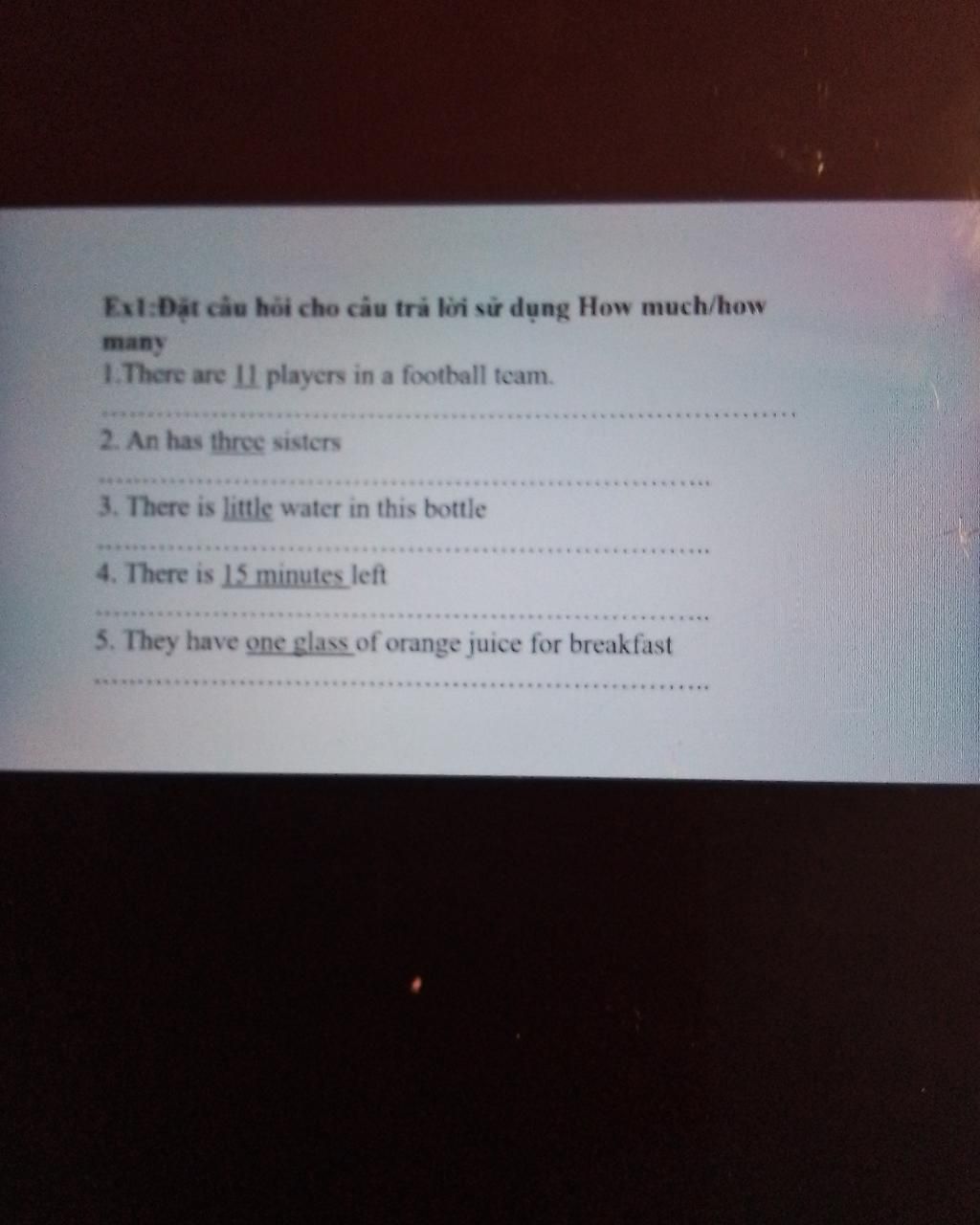 Lưu ý : đã là how many thì danh từ phải thêm s/es .