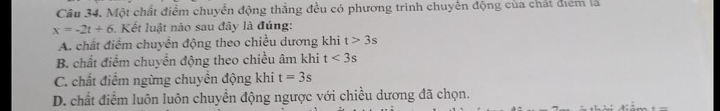 Giải thích các bước giải: Phương trình chuyển động thẳng X=Xo+V.t