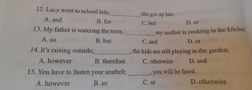 `-` Ta có: Otherwise: Nếu không thì ... `->` Ở đây ta dùng Otherwise hợp nghĩa hơn là However: Tuy nhiên. Còn đáp án `B` và `C` là sai cấu trúc ngữ pháp. `->` Chọn `D`.