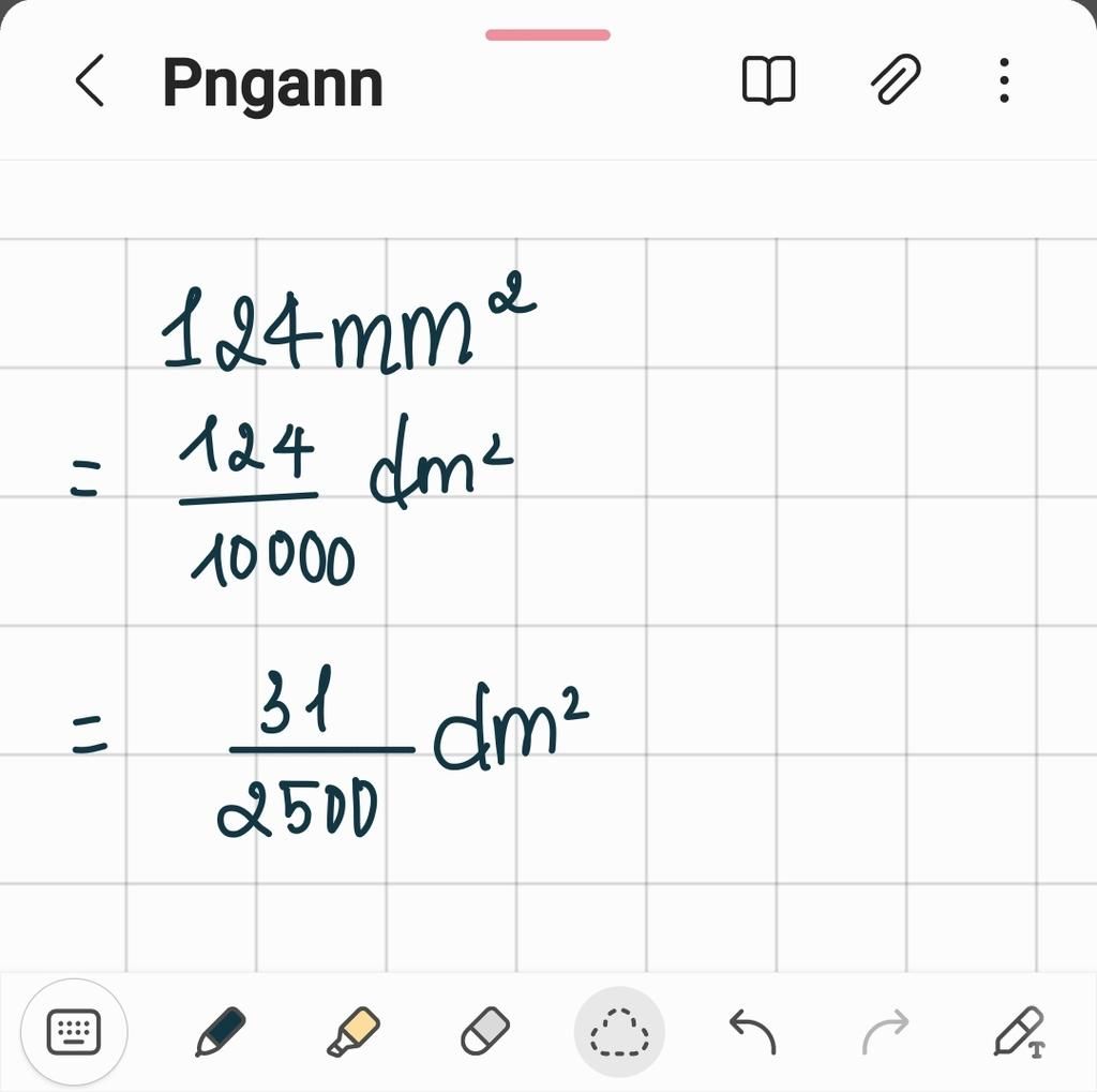 `124mm^2 = 31/2500dm^2`