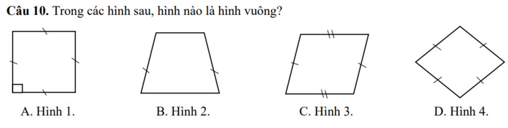 `@` Hình vuông là tứ giác có `4` góc vuông và có `4` cạnh bằng nhau.