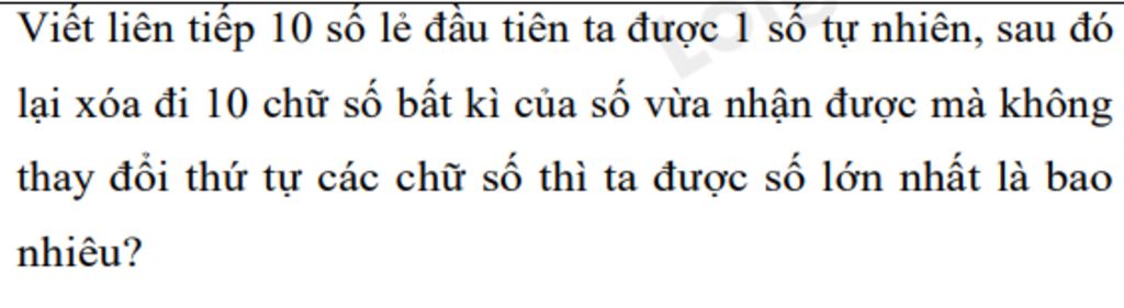 Viết liên tiếp 10 số tự nhiên lẻ đầu tiên: 135791113151719