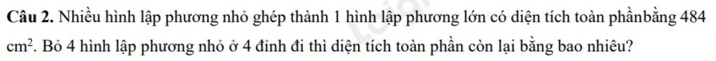 Vậy: Diện tích toàn phần còn lại là `484 cm^2`