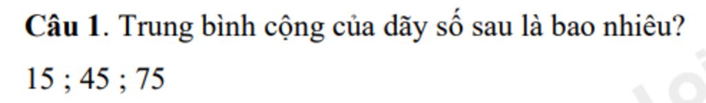 Vậy trung bình cộng của dãy số `15;45;75` là `45`.