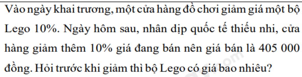 Giá tiền của bộ Lego trước khi giảm giá lần thứ 2 là: