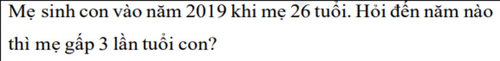Vậy đến năm 2019 + 39 = 2032 thì số tuổi của mẹ gấp 3 lần số tuổi của con.