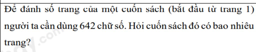 `=>` Để đánh số trang có `3` chữ số cần dùng: `642 – 9 – 180 = 453` (trang)