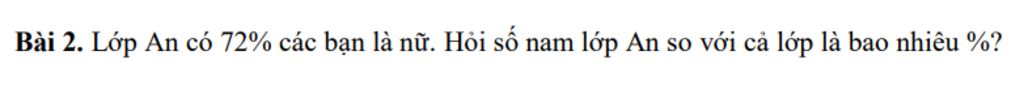 Số nam lớp An chiếm số phần trăm so với cả lớp là 100 % - 72% = 28%