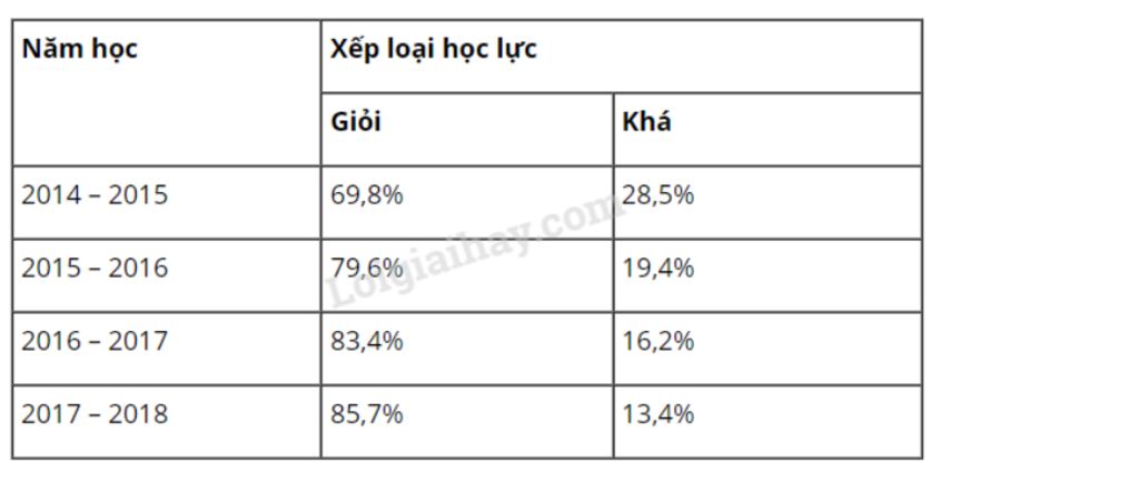 Cách 2: Để phần trăm học lực trung bình là cao nhất thì tổng số phần trăm Giỏi và Khá phải thấp nhất trong các năm.