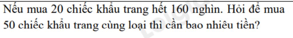 Mua `50` chiếc khẩu trang cùng loại thì cần số tiền là: