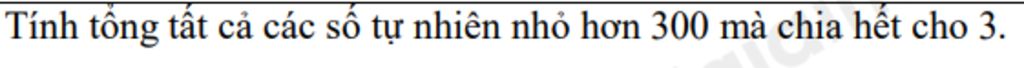 Tổng tất cả các số tự nhiên nhỏ hơn 300 mà chia hết cho 3 là