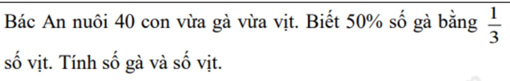 Từ đó ta biết `1/2` số gà bằng `1/3` số vịt