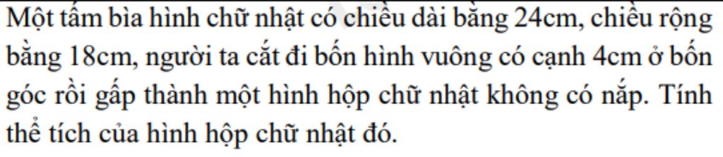 Chiều dài hình hộp chữ nhật là 24 – 4 – 4 = 16 (cm)