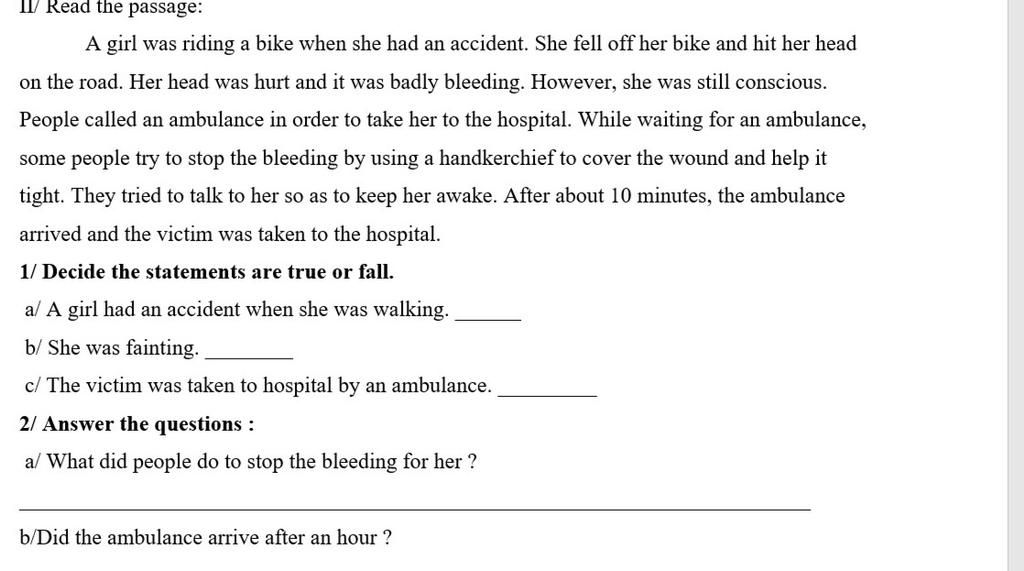 $→$ Thông tin đúng ở câu đầu: A girl was riding a bike when she had an accident