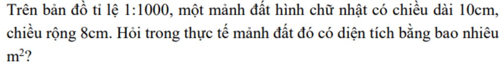 Chiều dài thực tế của mảnh đất là 10 x 1000 = 10 000 (cm) = 100 m