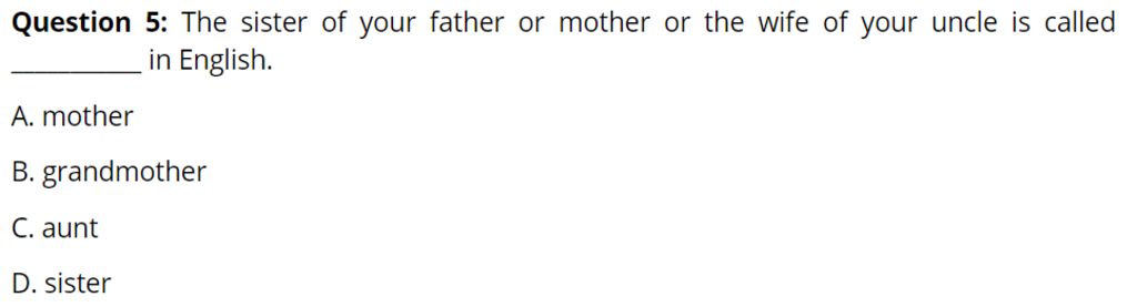 `@` Ta dựa vào nghĩa : Em của ba, mẹ bạn hoặc vợ của chú bạn thì gọi là ____ trong Tiếng Anh
