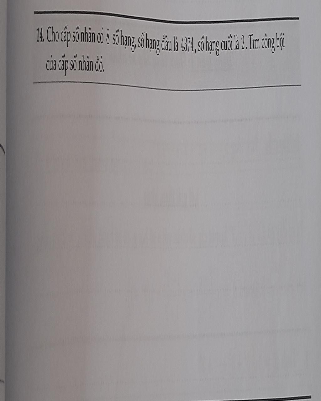 Cấp số nhân có `8` số hạng, số hạng đầu là `4374` và số hạng cuối là `2`