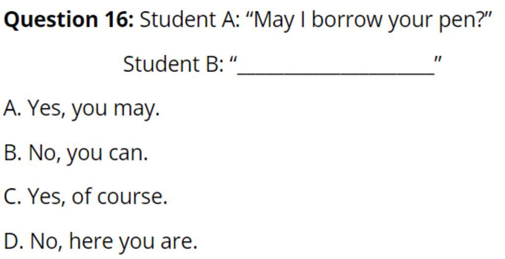 Vì ta loại B và D do can phải phủ định nên ko đi với no và D ko hợp nghĩa .