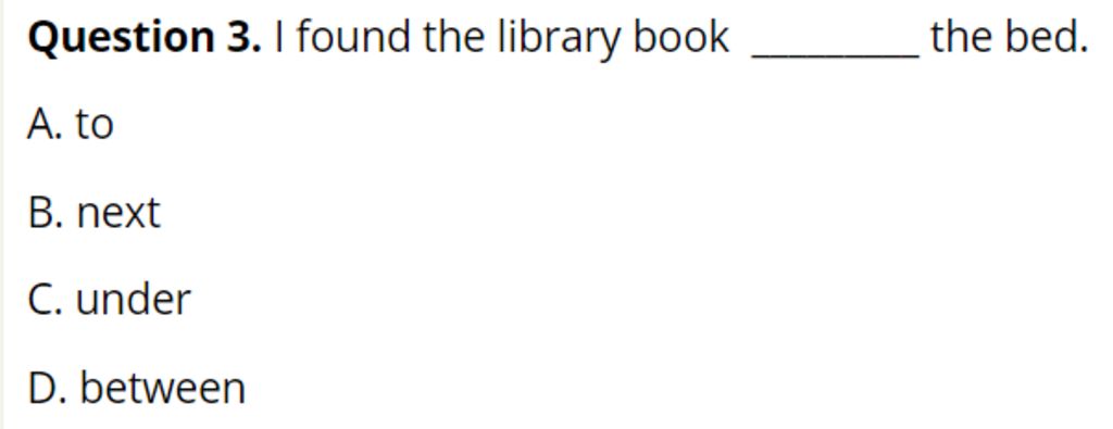 `->` Tôi đã tìm thấy cuốn sách của thư viện dưới gầm giường.