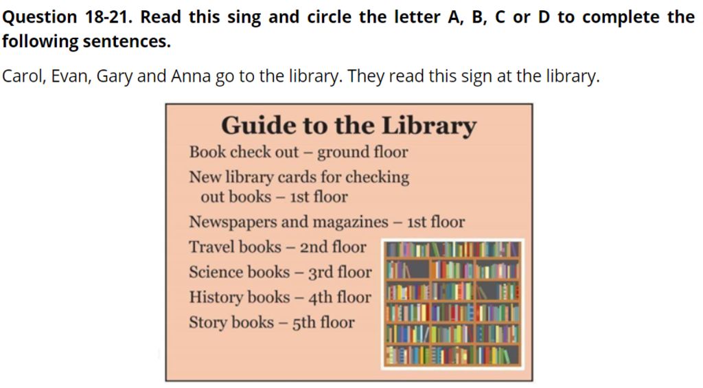 Question 20. Ana plans to visit a country far away. She needs a book from the .