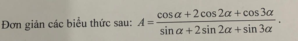 `A= cos a + 2cos 2a + cos 3a sin a+2 sin 2a+sin 3a`