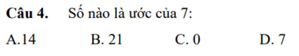 Câu 4. Số nào là ước của 7: