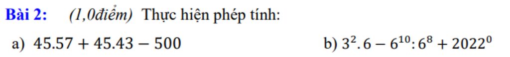 `b) 3^2 .6 -6^(10) :6^8 +2022^0`