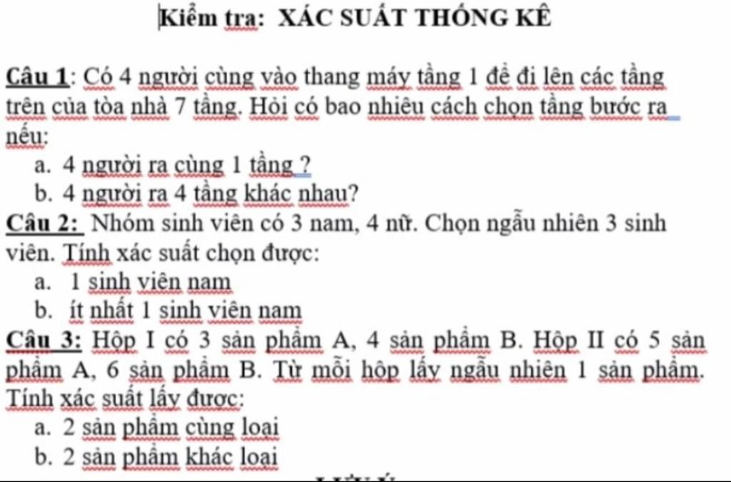 Câu 2: Nhóm sinh viên có 3 nam, 4 nữ. Chọn ngẫu nhiên 3 sinh
