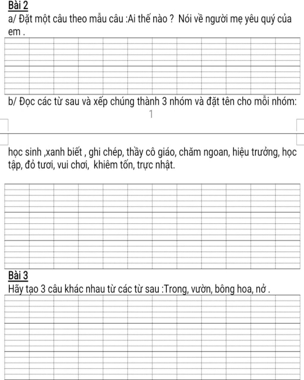 `a)` Đặt câu Ai thế nào nói về mẹ yêu quý của mình: