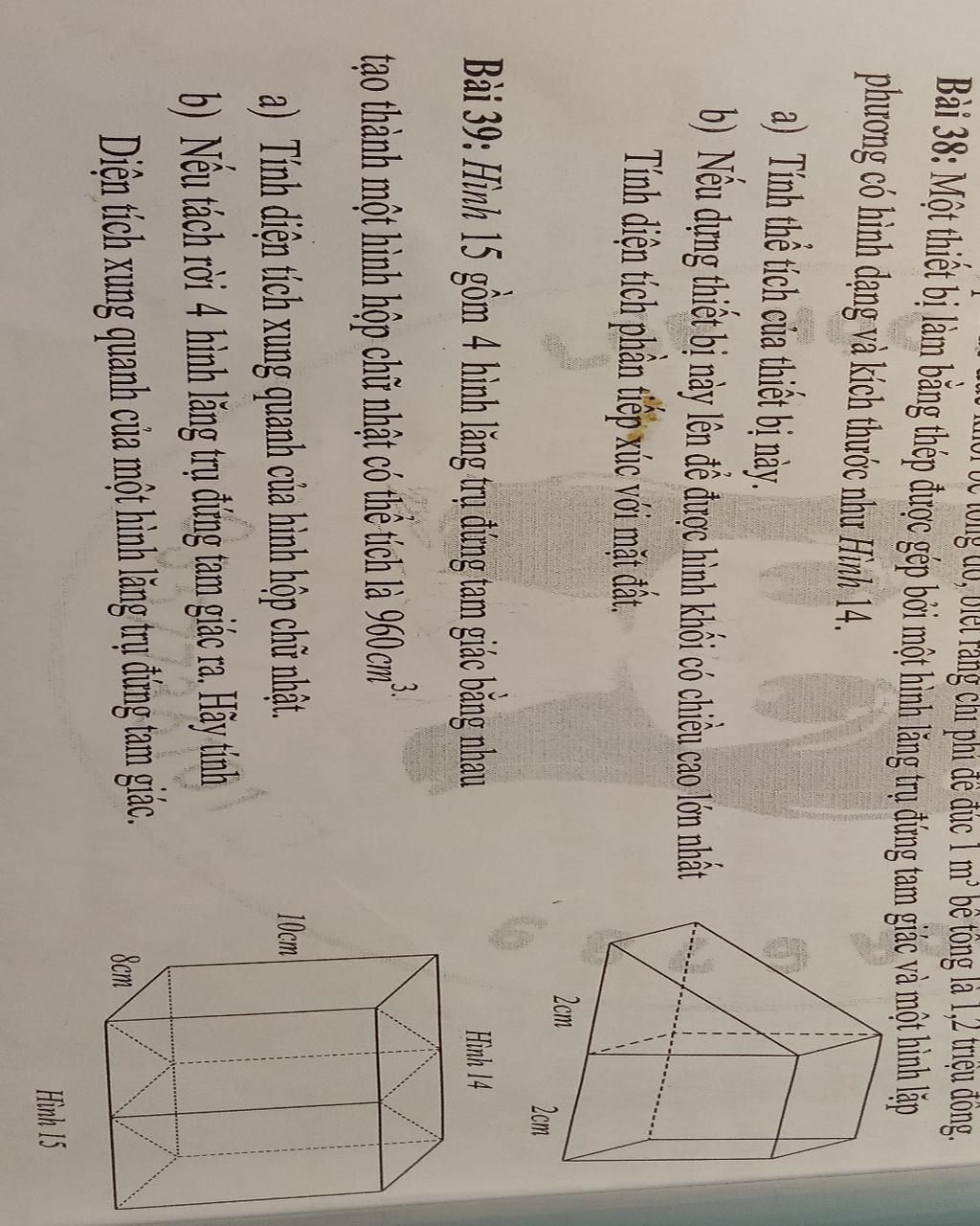 Bài 38: Một thiết bị làm bằng thép được góp bởi một hình lăng trụ đứng tam giác và một hình lặp