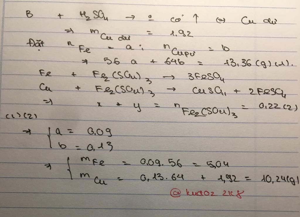 Đặt `n_{Fe}=x(mol);n_{Cu\ pu}=y(mol)`