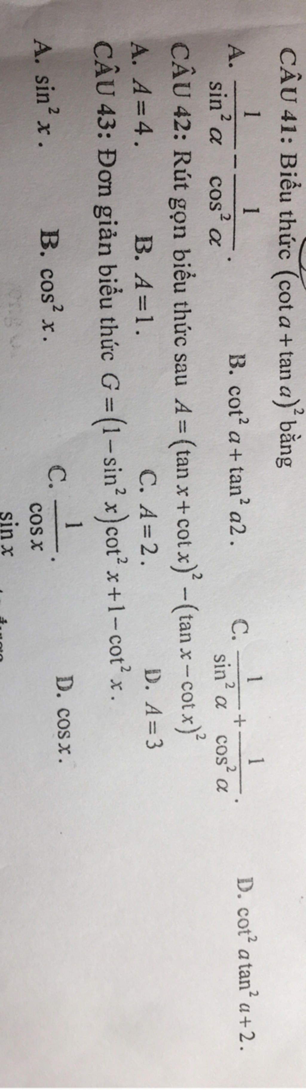 `=cot^2 x -sin^2 x .cot^2 x +1 -cot^2 x`