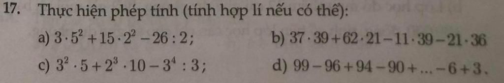 `d ) 99 − 96 + 93 − 90 + ... ... − 6 + 3 `