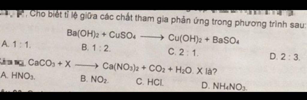 Tỉ lệ giữa `Ba(OH)_2 : CuSO_4` là `1: 1`