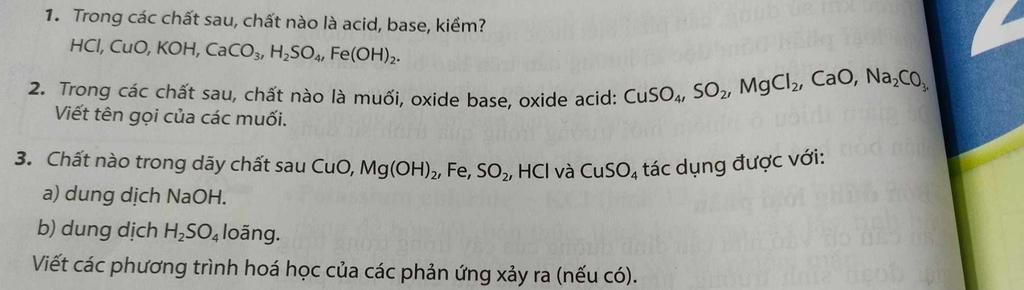 $3,$ a) Các chất tác dụng được với dung dịch NaOH là : $SO_2, HCl, CuSO_4$