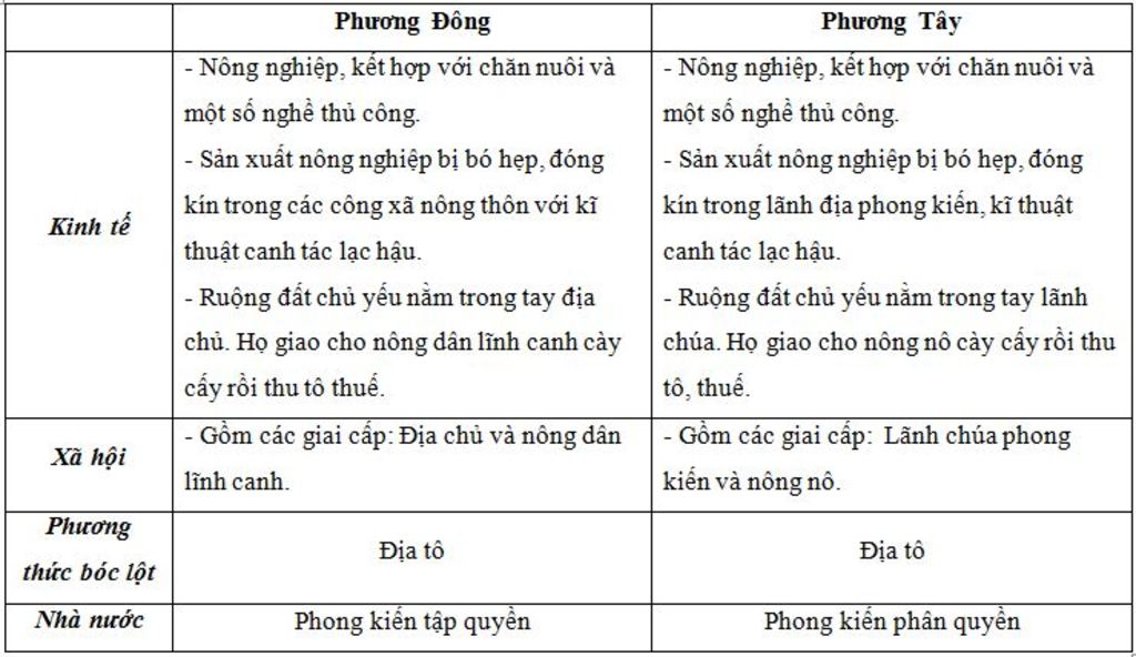 - Giống nhau: là cơ sở kinh tế nông nghiệp là chính