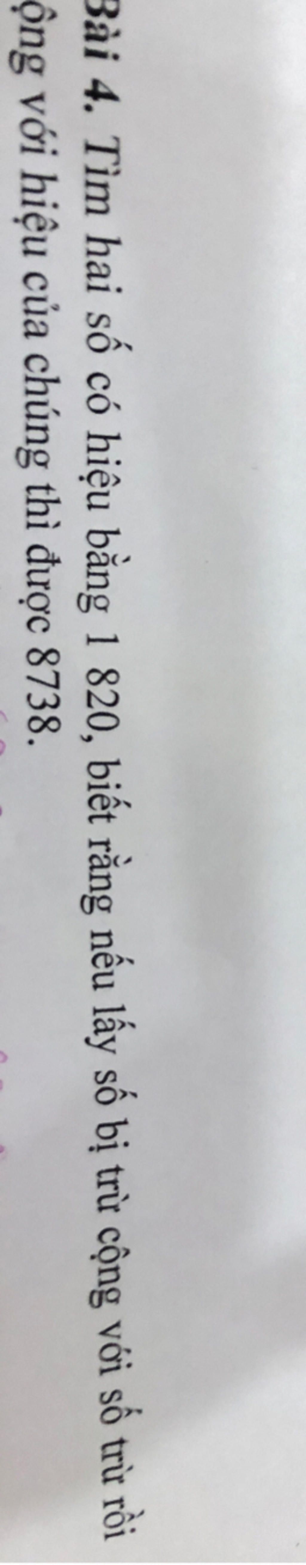 Đáp số: Số bị trừ là `4369` và số trừ là `2549`