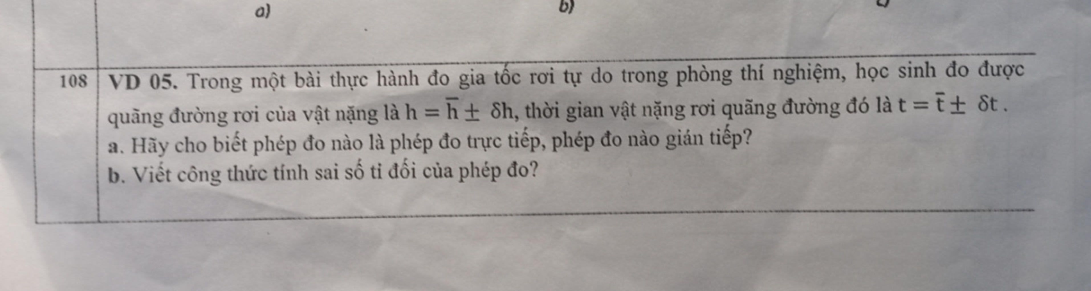 108 | VD 05. Trong một bài thực hành đo gia tốc rơi tự do trong phòng thí nghiệm, học sinh đo được