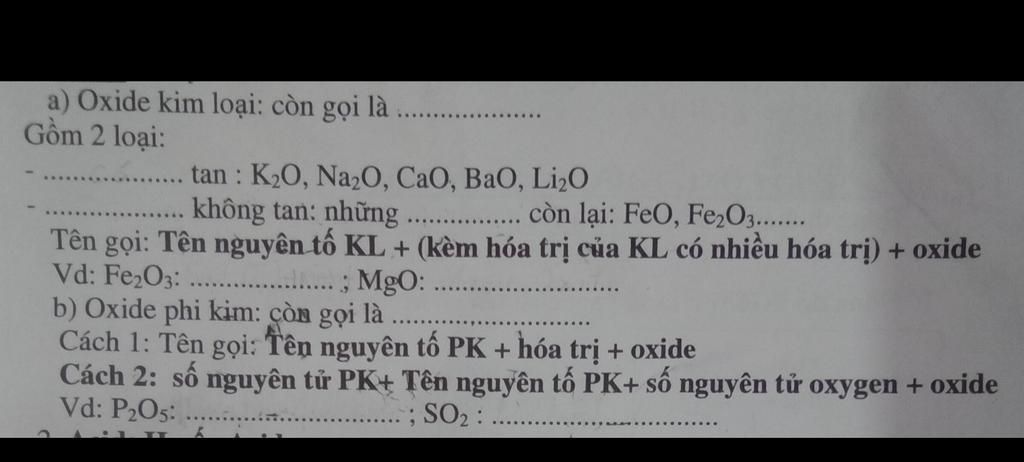 `a)` Oxide kim loại: còn gọi là basic oxide.