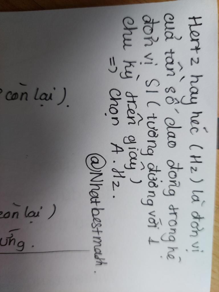 Đơn vị của tần số dao động trong hệ đơn vị SI là