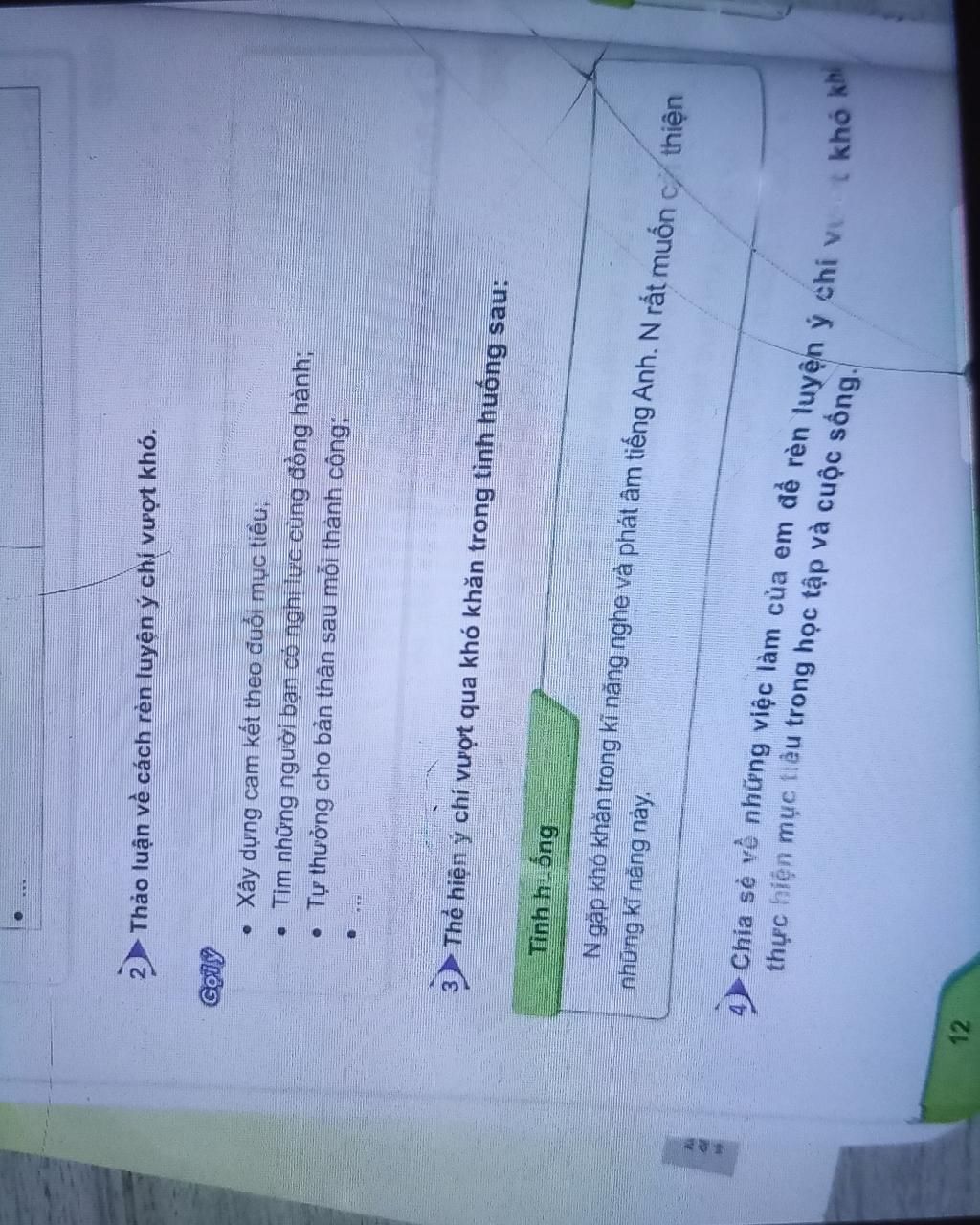 2 ) Thảo luận về cách rèn luyện ý chí vượt khó.