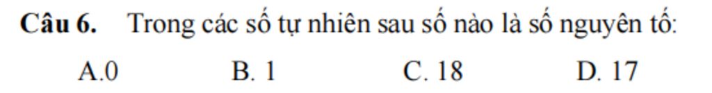 `D.17->Ư (17)={1;17}->` Số nguyên tố