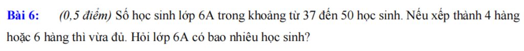 Do khi xếp số học sinh lớp `6A` thành `4` hàng hoặc `6` hàng thì vừa đủ `=>` Số học sinh lớp `6A` là số chia hết cho` 4` và `5=>x\vdots 4;6=>x\in BC(4;6)`