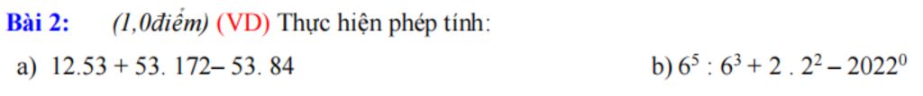 `b)` `6^5 : 6^3 + 2.2^2 - 2022^0 `